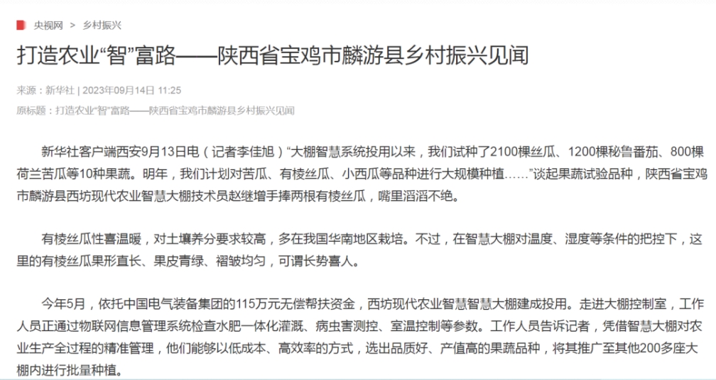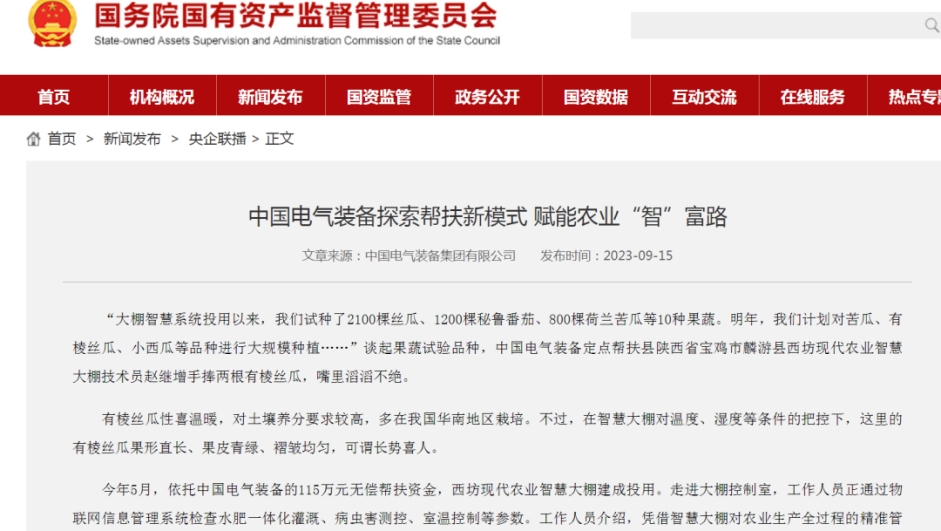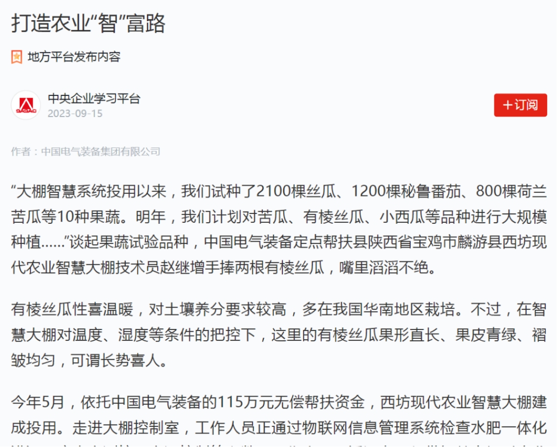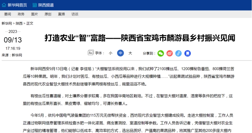 連日來(lái),介紹中國(guó)電氣裝備定點(diǎn)幫扶項(xiàng)目成效的報(bào)道《打造農(nóng)業(yè)“智”富路——陜西省寶雞市麟游縣鄉(xiāng)村振興見(jiàn)聞》備受多家主流媒體關(guān)注,一起來(lái)看看那些被“聚焦”的時(shí)刻!
